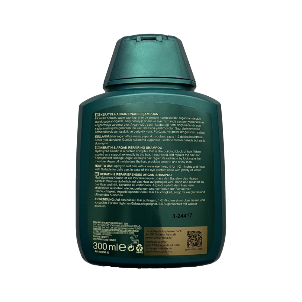 فرمولاسیون ملایم و فاقد مواد مضر مانند SLS، SLES، پارابن و سیلیکون، استفاده روزانه و برای پوست سر حساس را ایمن کرده و موها را نرم، خوش‌حالت و سالم نگه می‌دارد. Bioxcin Keratin & Argan Repair شامپویی کامل برای بازسازی و محافظت از موهای آسیب‌دیده است.